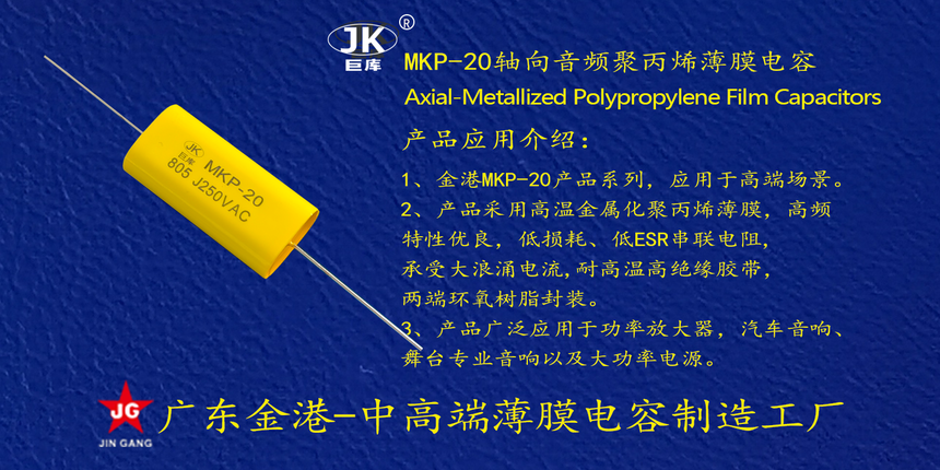 産品(pǐn)品牌 :JK巨庫金港(gang)JINGANG 産品材質: 金屬(shǔ)化聚丙烯高溫(wēn)薄膜 産品性能(neng): 采用高溫金屬(shu)化聚丙烯薄膜(mó) 耐壓高,損耗低(dī),内部溫升小,使(shi)用錫合金噴金(jīn), 具備良好的通(tōng)電流能力。 産品(pin)作用: 廣泛應用(yòng)于功率放大器(qi),汽車音響、專業(yè)音響。 定制加工(gong) :可按客戶需求(qiú)定制,滿足客戶(hù)不同需求。