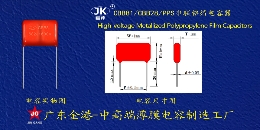 産品(pǐn)品牌 :JK巨(jù)庫金港(gǎng)JINGANG 産品材(cai)質: 金屬(shǔ)化聚丙(bǐng)烯高溫(wēn)薄膜 産(chǎn)品性能(néng): 采用高(gao)溫金屬(shǔ)化聚丙(bing)烯薄膜(mó) 耐壓高(gao),損耗低(di),内部溫(wēn)升小,使(shǐ)用錫合(hé)金噴金(jin), 具備良(liang)好的高(gao)脈沖電(dian)流能力(lì),充放電(dian)性能優(you)異。 産品(pin)作用: 廣(guǎng)泛應用(yong)于各種(zhong)高頻諧(xie)振,直流(liú),交流和(he)脈沖電(diàn)路中。 定(dìng)制加工(gōng) :可按客(ke)戶需求(qiu)定制,滿(mǎn)足客戶(hu)不同需(xu)求。