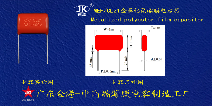 産品品牌(pai) :JK巨庫金港JINGANG 産(chǎn)品材質: 金屬(shǔ)化聚丙烯高(gāo)溫薄膜 産品(pǐn)性能: 采用高(gao)溫金屬化聚(jù)丙烯薄膜 耐(nài)壓高,損耗低(dī),内部溫升小(xiao),使用錫合金(jin)噴金, 具備良(liang)好的高脈沖(chong)電流能力,充(chōng)放電性能優(yōu)異。 産品作用(yong): 廣泛應用于(yú)各種隔直流(liu)濾波,低脈沖(chong)電路,旁路和(he)耦‼️合等場合(hé)。 定制加工 :可(kě)按客戶需求(qiú)定制,滿足客(kè)戶不同需求(qiú)。