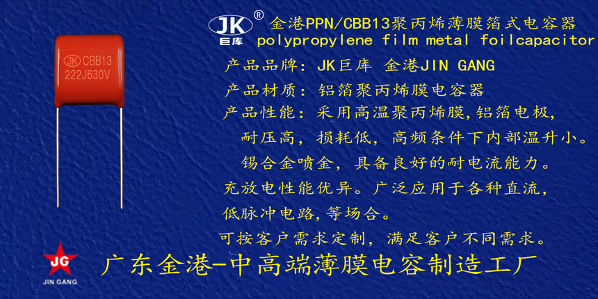 産品品牌(pai) :JK巨庫金港(gang)JINGANG 産品材質(zhì): 鋁箔聚丙(bǐng)烯膜電容(róng)器 産品性(xìng)能: 采用高(gao)溫聚丙烯(xi)膜,鋁箔電(dian)極耐壓高(gao), 損耗低,i高(gāo)頻條件下(xia)内部溫升(sheng)小錫合金(jīn)噴金, 具備(bèi)良好的耐(nài)電流能力(li)。充放電性(xing)能優異。 産(chan)品作用: 廣(guǎng)泛應用于(yú)各種直流(liú),低脈沖電(dian)路,等場合(he)。 定制加工(gōng) :可按客戶(hù)需求定制(zhì),滿足客戶(hù)不同需求(qiú)。