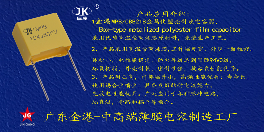 産品品牌(pái) :JK巨庫金港JINGANG 産品(pin)材質: 高溫金屬(shǔ)化聚丙烯,塑料(liao)外殼封裝 産品(pǐn)性能: 采用高溫(wēn)金屬化聚丙烯(xī),耐壓高産品一(yi)緻性好, 損耗低(dī),内部溫升小。錫(xī)合金噴金, 具備(bei)良好的耐電流(liu)能力。充放電性(xìng)能優異。 産品作(zuo)用: 應用于高壓(ya)高頻脈沖電路(lù),諧振電路,等場(chang)合。