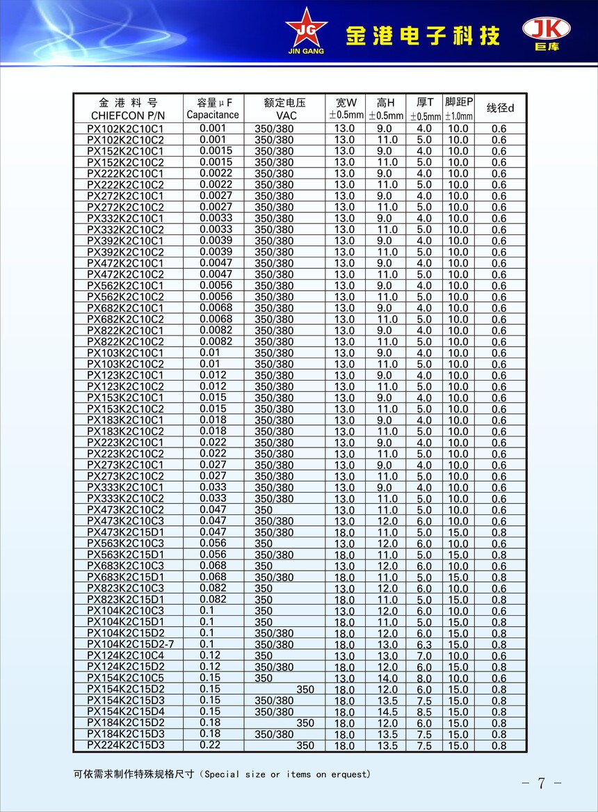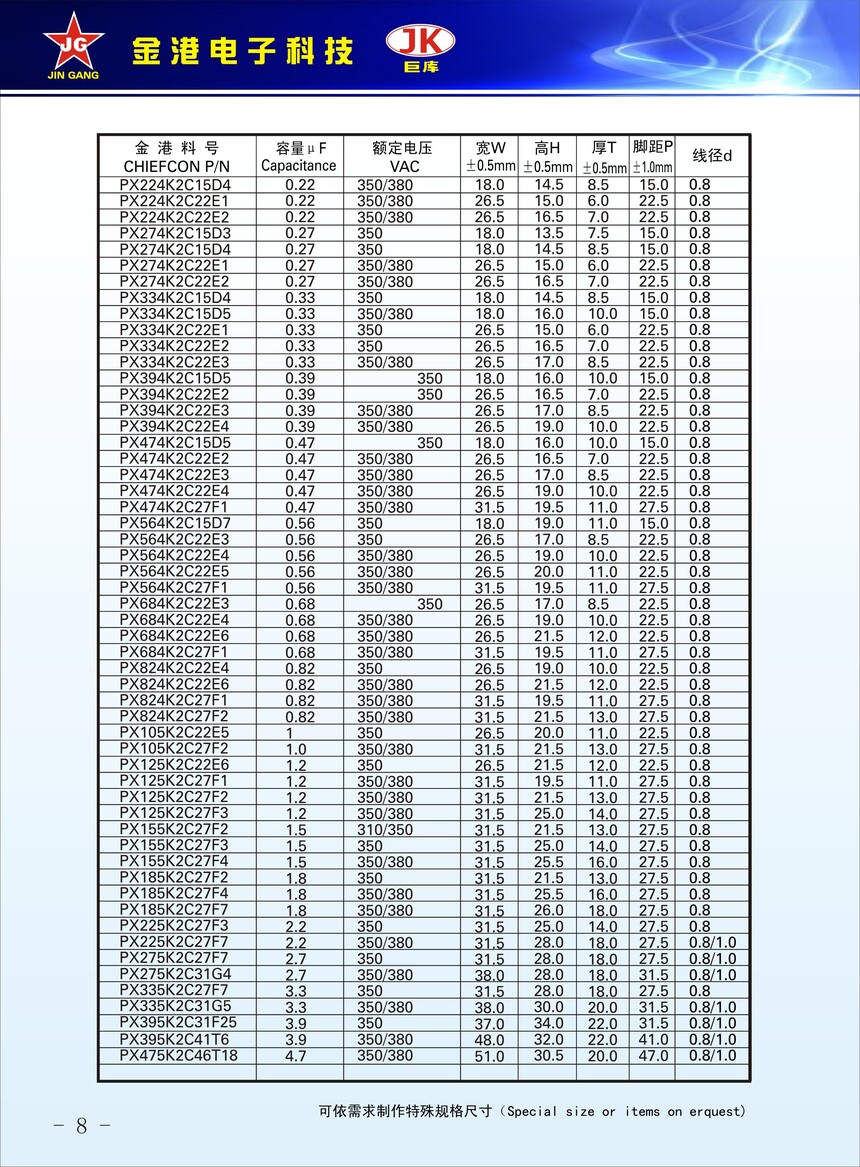 産(chǎn)品品牌(pái) :JK巨庫金(jīn)港JINGANG 産品(pǐn)材質: 金(jīn)屬化聚(jù)丙烯高(gāo)溫薄膜(mo) 産品性(xing)能: 采用(yòng)高溫金(jīn)屬化聚(jù)丙烯薄(bao)膜 耐壓(ya)高,損耗(hao)低,内部(bù)溫升小(xiao),使用錫(xī)合金噴(pēn)金, 具備(bei)良好的(de)通電流(liú)能力。 産(chan)品作用(yòng): 廣泛應(ying)用于各(ge)種交流(liu)跨接,抗(kang)幹擾電(diàn)路場景(jǐng)。 定制加(jia)工 :可按(àn)客戶需(xu)求定制(zhì),滿足客(ke)戶不同(tong)需求。